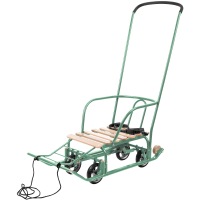 Выдвинув колеса, вы сможете катить санки по гладкому асфальту или полу (например, в магазине или в подъезде). Широкие плоские полозья обеспечивают устойчивость санок и легкое скольжение по снегу.